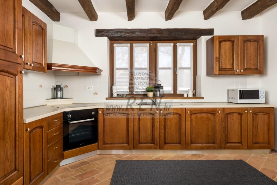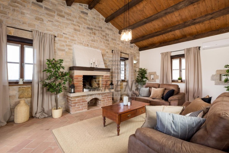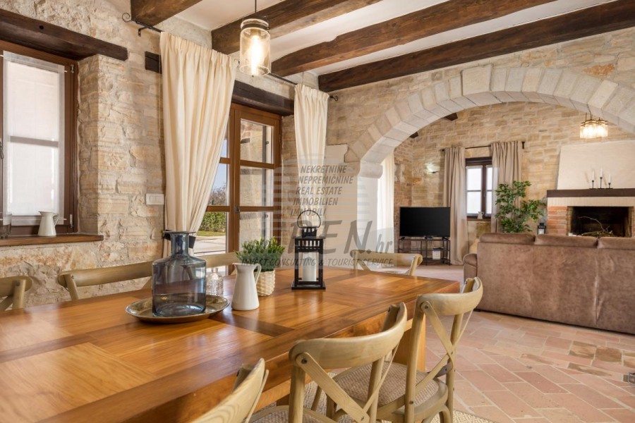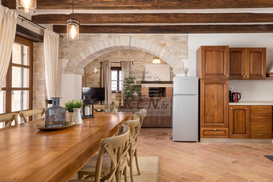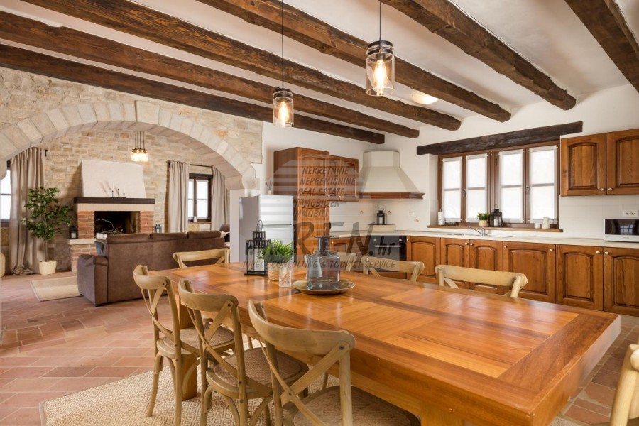 La casa dispone con un totale di 248,90 m2, terreno 2250 m2, è a 10 min. (15km) dal mare e dalle splendide spiagge naturali, 10 min. (15km) dista dal centro di Poreč. La casa è composta dal piano terra e primo piano. Ci sono in totale 3 camere da letto, 3 bagni, WC, cucina, soggiorno, deposito, guardaroba. La casa è dotata di parcheggio privato, terrazzo, piscina, cucina estiva, sistema di allarme, caminetto, riscaldamento centralizzato e a pavimento.